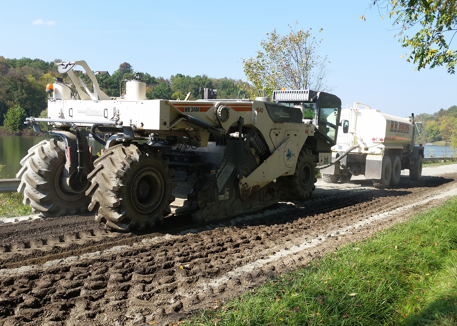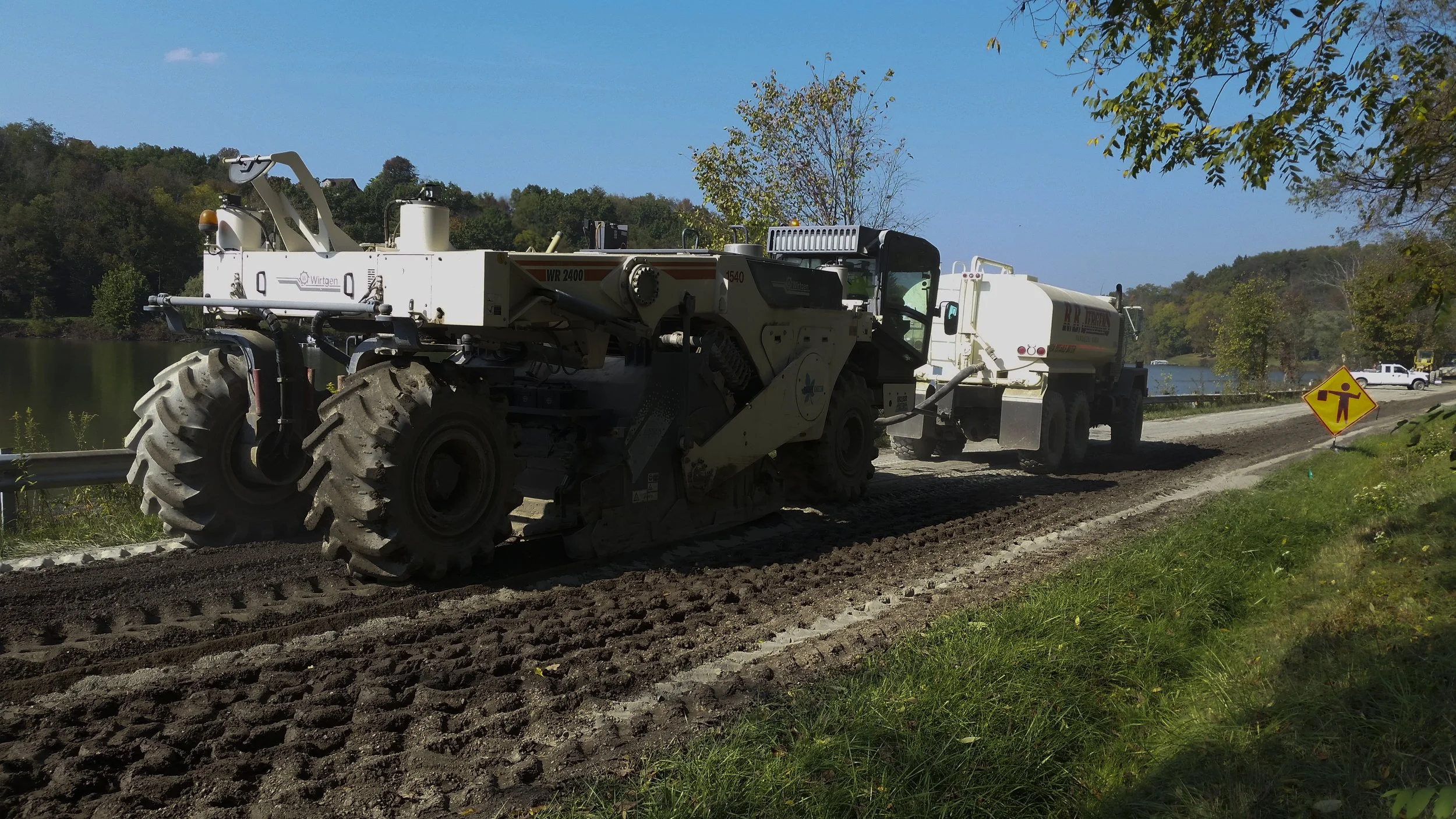 The experienced road crews at R.B. Jergens can ensure the reconstruction of your pavement meets the highest quality standards. After pulverizing asphalt, subgrade gravel, and underlying soils simultaneously, R.B. Jergens mixes chemicals and water into the ground mixture, creating a high-strength road with no materials hauled off-site. Completed projects have demonstrated the use of full-depth reclamation in the Utica and Marcellus shale play region. Let R.B. Jergens show how FDR can control your long-term costs.